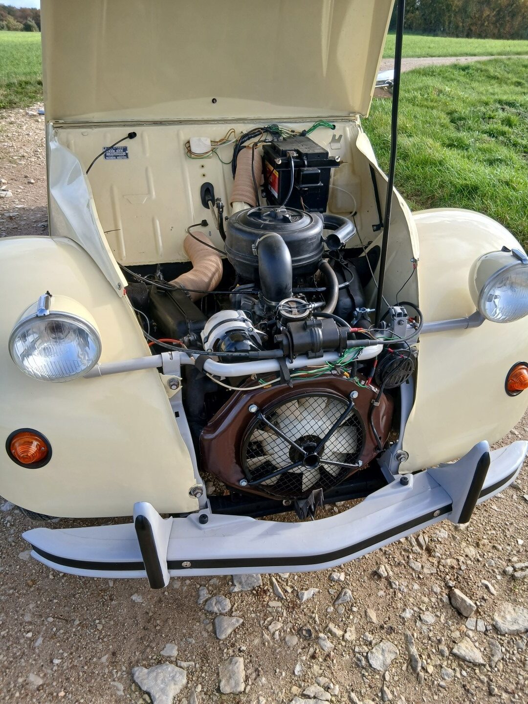 The engine has been rebuilt, pistons de-glazed, new piston rings, camshaft controlled, oil pump replaced, new seals etc. It is a twin choke M28 602cc AM2A.