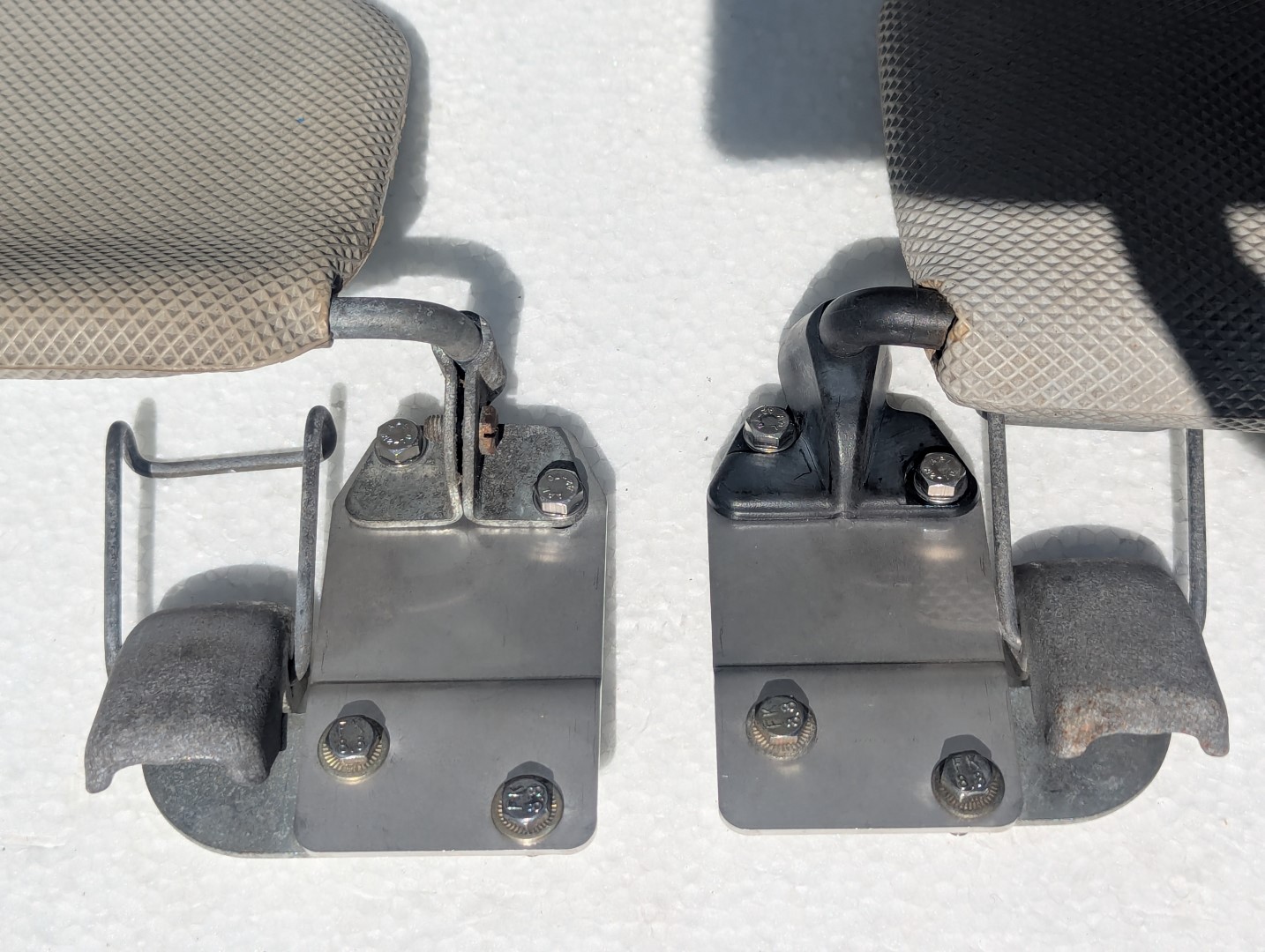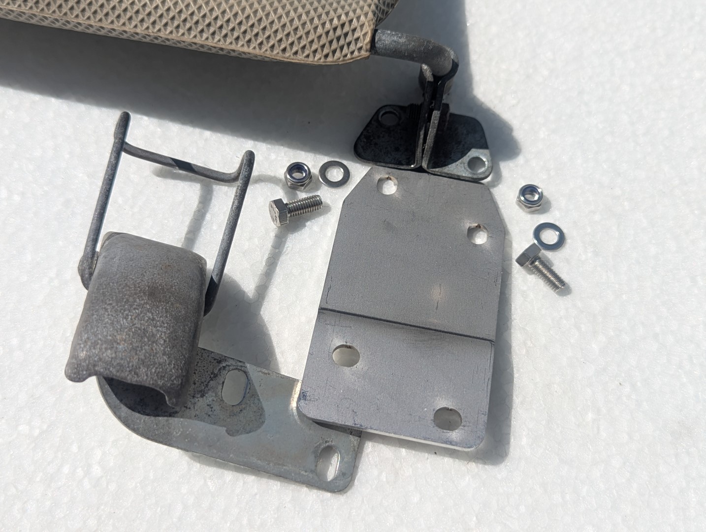 - Place the Visor-Riser bracket over the plate of the hook mechanism and secure them both with the original screws & washers. (The oval holes in the V-R bracket allow it to be positioned so that there is sufficient room for the roof securing hook to move freely, regardless of which side of the car you are fitting it to).